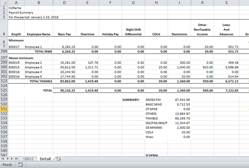 Following is a sample of Payroll Summary Report generated from the system and directly exported to excel file. You may also generate a summary per department