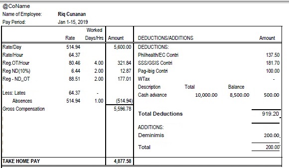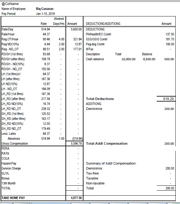 Following is sample of Payslip generated from the system. You may also generated compact payslip where the zero values are hidden.