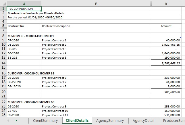 2. Client Detail = contains the details of awarded contracts per client on a given period.