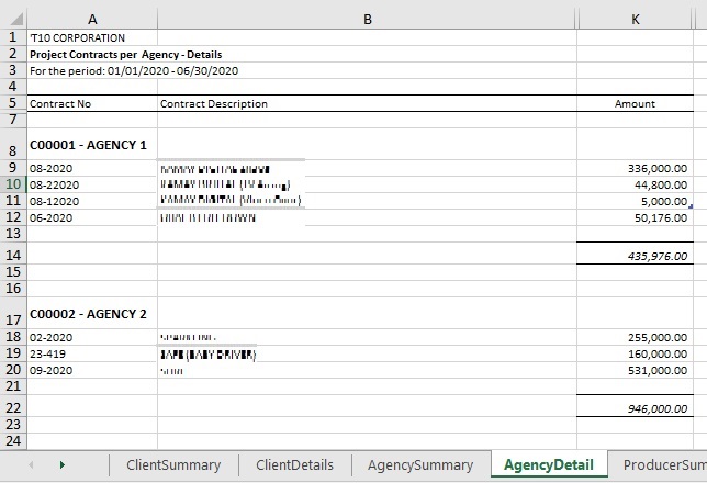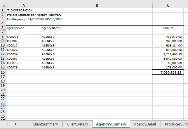 4. Agency Summary = contains the summary of total contracts per Agency on a given period.