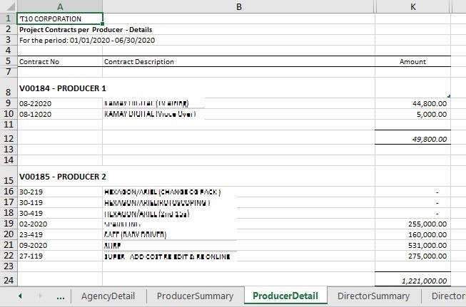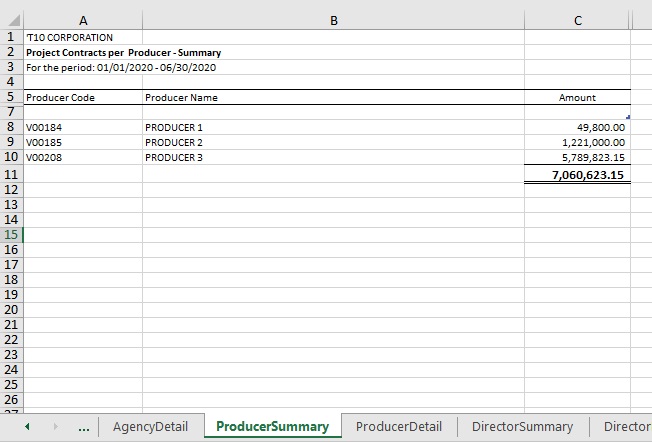 6. Producer Summary = contains the summary of total contracts per Producer on a given period.