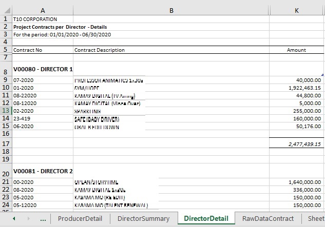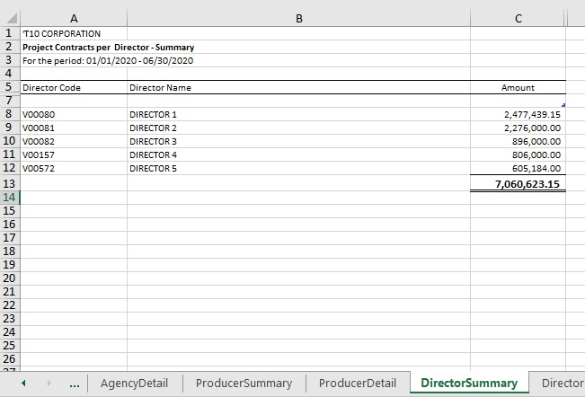 8. Director Summary = contains the summary of total contracts per Director on a given period.